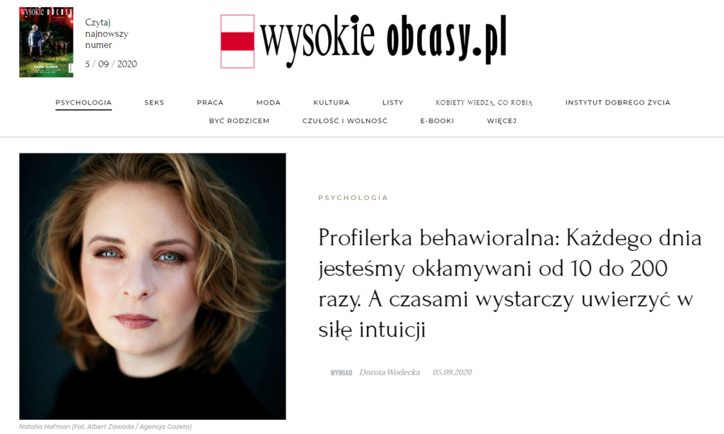 Wywiad dla popularnego dziennika, w którym opowiadałam między innymi o tym, jaką rolę pełni kłamstwo w życiu różnych grup zawodowych i jak można je rozpoznać. Rozmawiała ze mną Ewa Jankowska